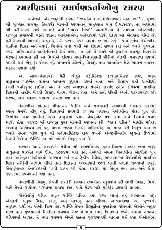 માનદ્ મંત્રીશ્રી : શ્રી પ્રવિણસિંહજી અદેસિંહજી રણા
